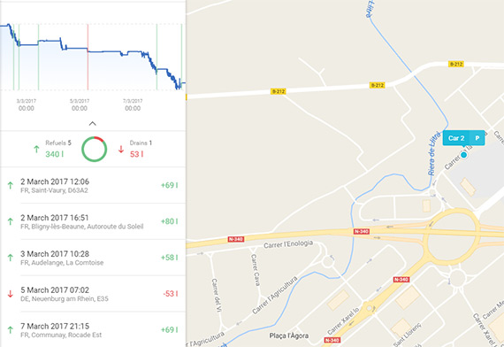 Зная текущий уровень топлива, включая случаи слива топлива и географического места слива, позволяет лучше планировать поездки, оценивать реальные расходы топлива и предотвращать кражи.